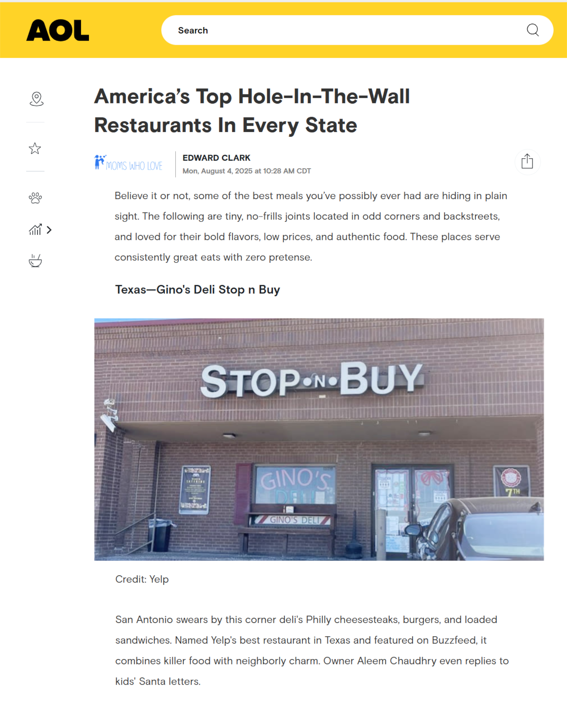 Gino’s Deli yet again is ranked the best Hole In The Wall restaurant in the state of Texas